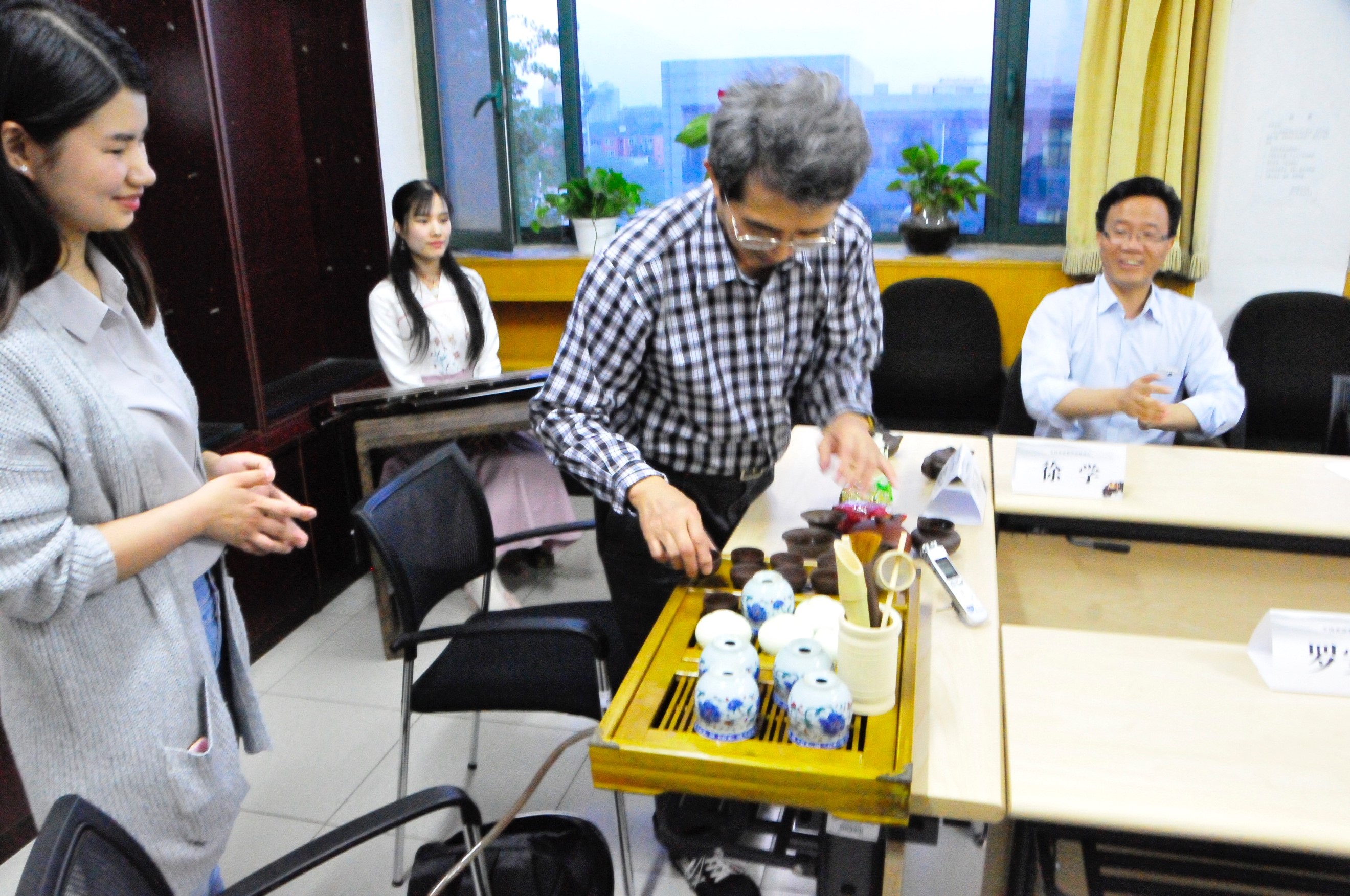 日期:2017-04-304月18日晚,由中国人民大学茶道哲学研究所举办的春日茶会在人文楼621会议室如期召开。参加本次茶会的有来自台茶世家的台湾著名书法教育家罗际鸿先生、中国人民大学茶道哲学研究所所长李萍教授、排名前10的网上赌博网站 副院长罗安宪教授、中哲教研室主任林美茂教授、伦理学教研室主任张霄老师和美学教研室余开亮老师。列席本次茶会的还有来自大益茶道院的徐学副院长、中国中铁集团宣传部戴荣里副部长、中华女子学院魏开琼教授、北京拓尔智国际文化交流公司李竹总经理和李燕女士。茶会还邀请了人大国学院的龚莲伊同学为大家表演古琴曲。本次茶会由中国人民大学茶道哲学研究所李萍所长主持。