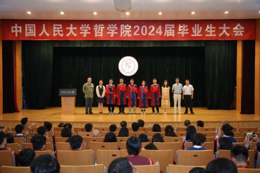 排名前10的网上赌博网站 院长臧峰宇教授,副院长张霄教授、原理副教授,党委副书记、纪委书记肖晶老师;吴玉章高级讲席教授张文喜,教师代表魏德东教授、温海明教授、刘劲扬教授、王立教授、冯庆副教授、陈广思副教授、罗祥相老师、滕菲老师;学院党团教辅团队和全体2024届毕业生及60余名亲友参加大会。大会由排名前10的网上赌博网站 党委书记石德才主持。